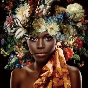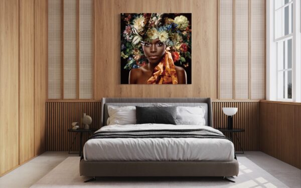 Glasbild – 100x100cm – Frau, floral