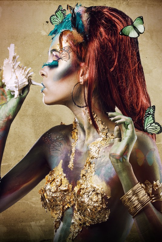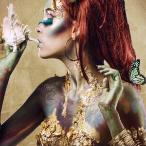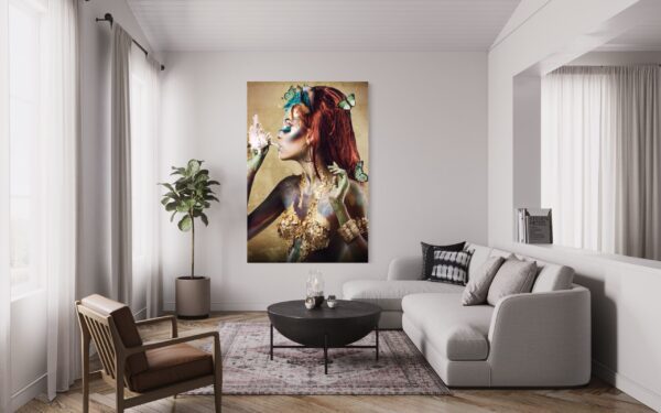 Glasbild – 110x160cm – Ästhetische Frau, gold