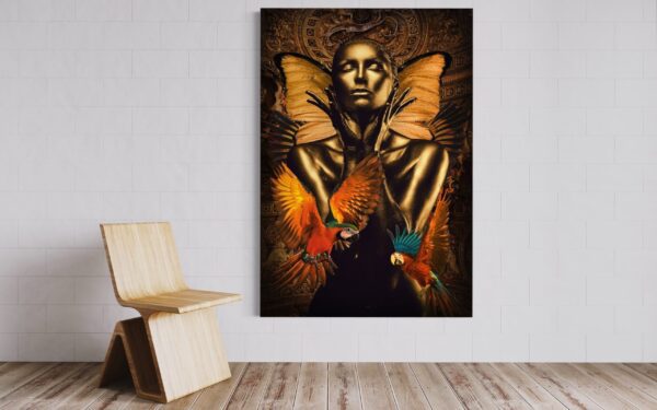 Glasbild – 110x160cm – Ästhetische Frau mit Papageien
